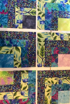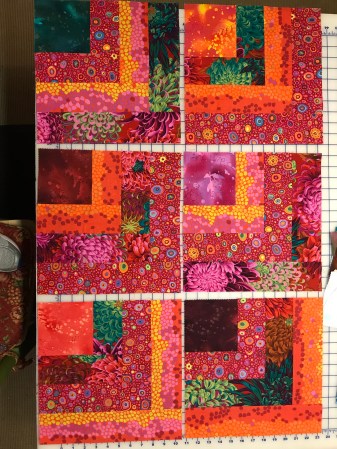 I’m really pleased how the six blocks from each set of three fabrics looks completely different except for the color palette. The placement of color is key and I’m paying special attention to slight nuances in the fabric.